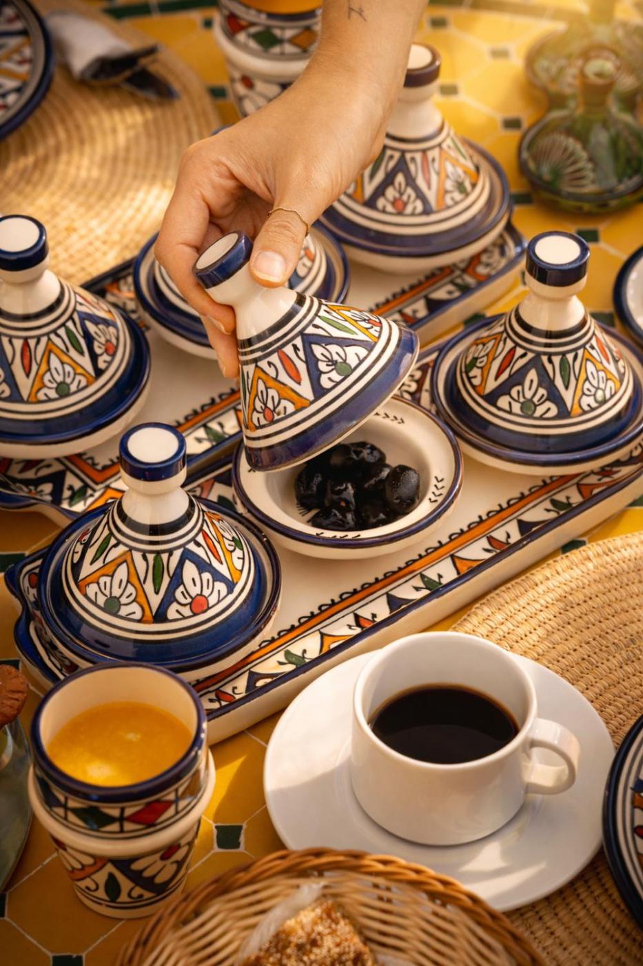 A selection of options including fresh pastries, juice and cheese is served for the halal breakfast.