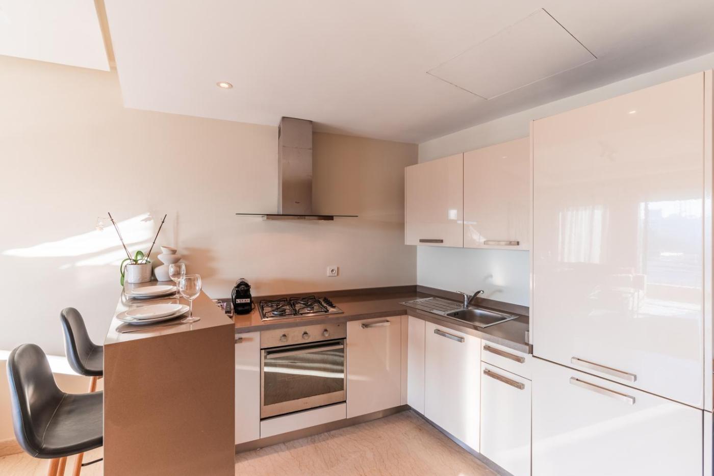 One-Bedroom Apartment. The apartments kitchen, which features a stovetop and an oven, is available for cooking and storing food. This apartment is air-conditioned and has a seating area with a flat-screen TV, a washing machine, a private entrance, a coffee machine, as well as a dining area. The unit has 1 bed.