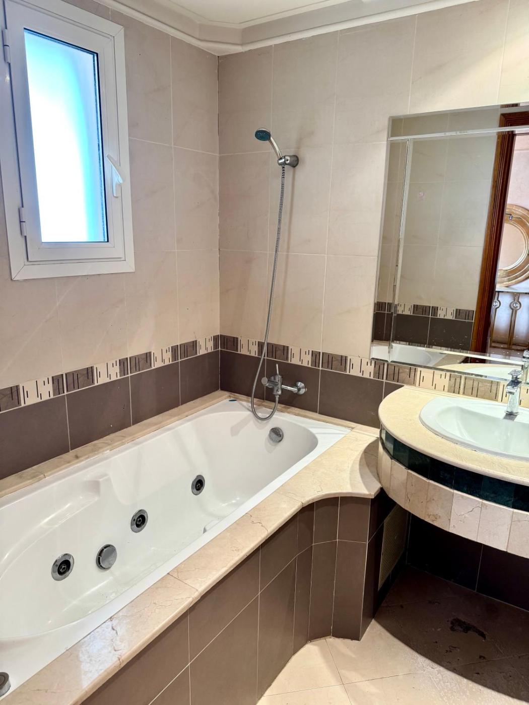 Three-Bedroom Apartment. This apartment boasts a hot tub. The air-conditioned apartment features 3 bedrooms, 2 bathrooms and a kitchen. The apartments kitchen is available for cooking and storing food. The spacious apartment provides a washing machine, heating and a terrace. The unit offers 4 beds.