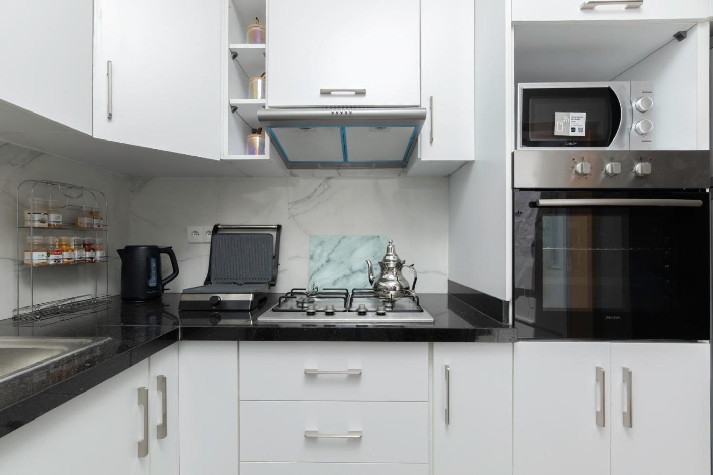 One-Bedroom Apartment. The well-fitted kitchen features a stovetop, a refrigerator, kitchenware and an oven. This apartment is air-conditioned and has a seating area with a flat-screen TV, a washing machine, a tea and coffee maker, a dining area, as well as a wardrobe. The unit has 3 beds.