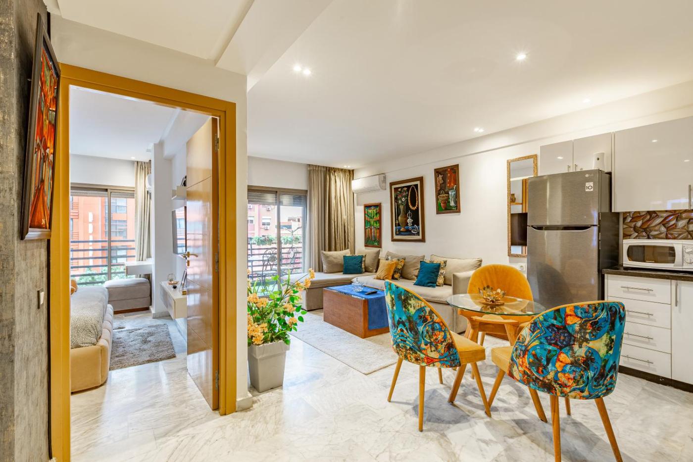 Situated in Marrakech, 700 metres from Marrakesh Train Station and 2.1 km from Majorelle Gardens, PB16 Flat Fully Equipped GuƩliz TOP Center offers a terrace and air conditioning. This property offers access to a balcony, free private parking and free WiFi. The accommodation features a 24-hour front desk and a lift for guests.