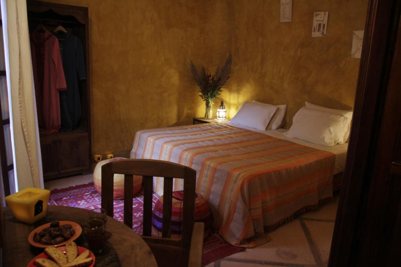 The riad offers simple rooms with comfortable and practical furniture. Each room represents a magical place in Morocco.