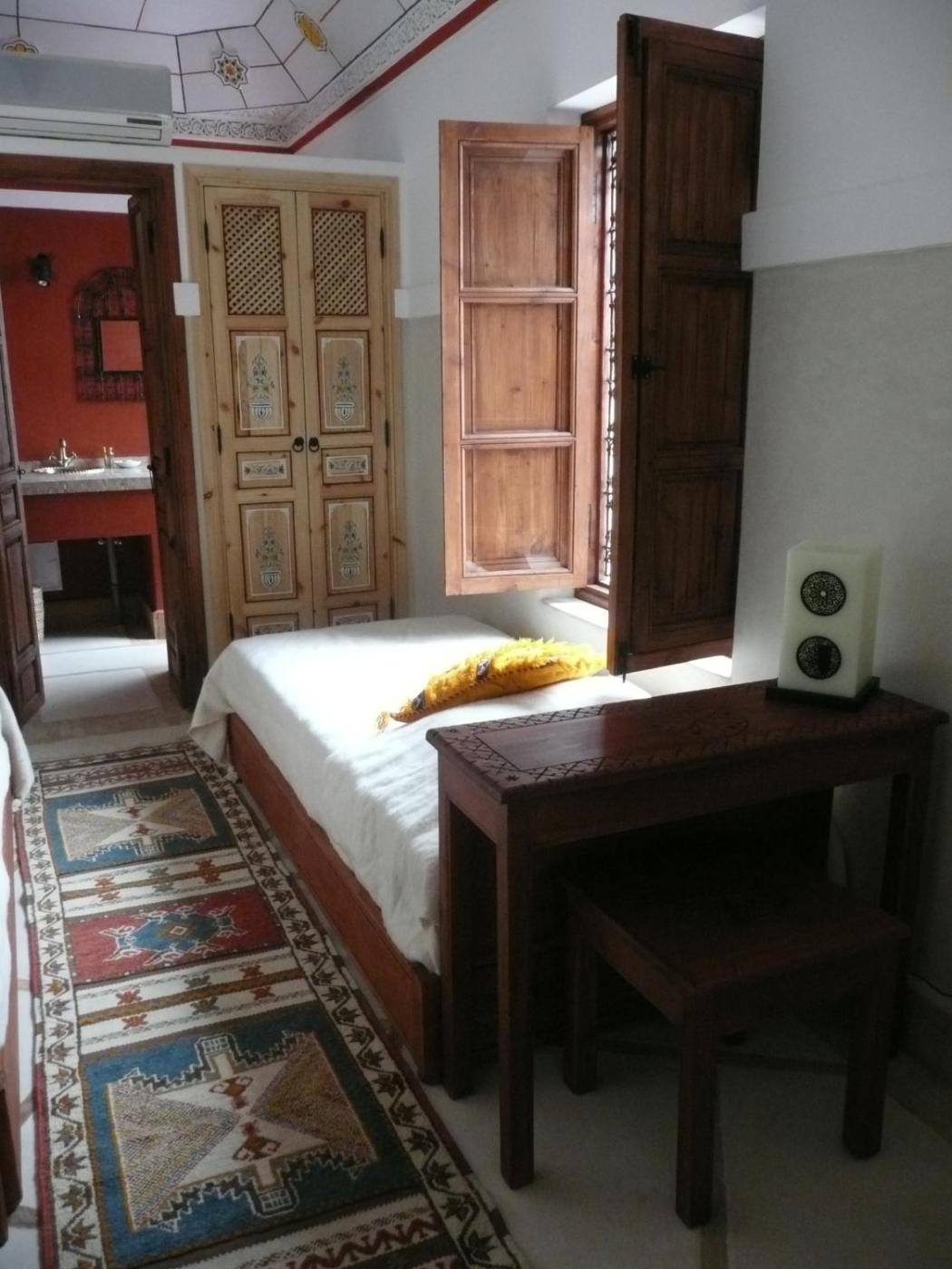 The rooms at Riad Euphorbe arearound the central courtyard and are air-conditioned. Decorated in a Moroccan style, they also have a tadelakt bathroom with toiletries.
