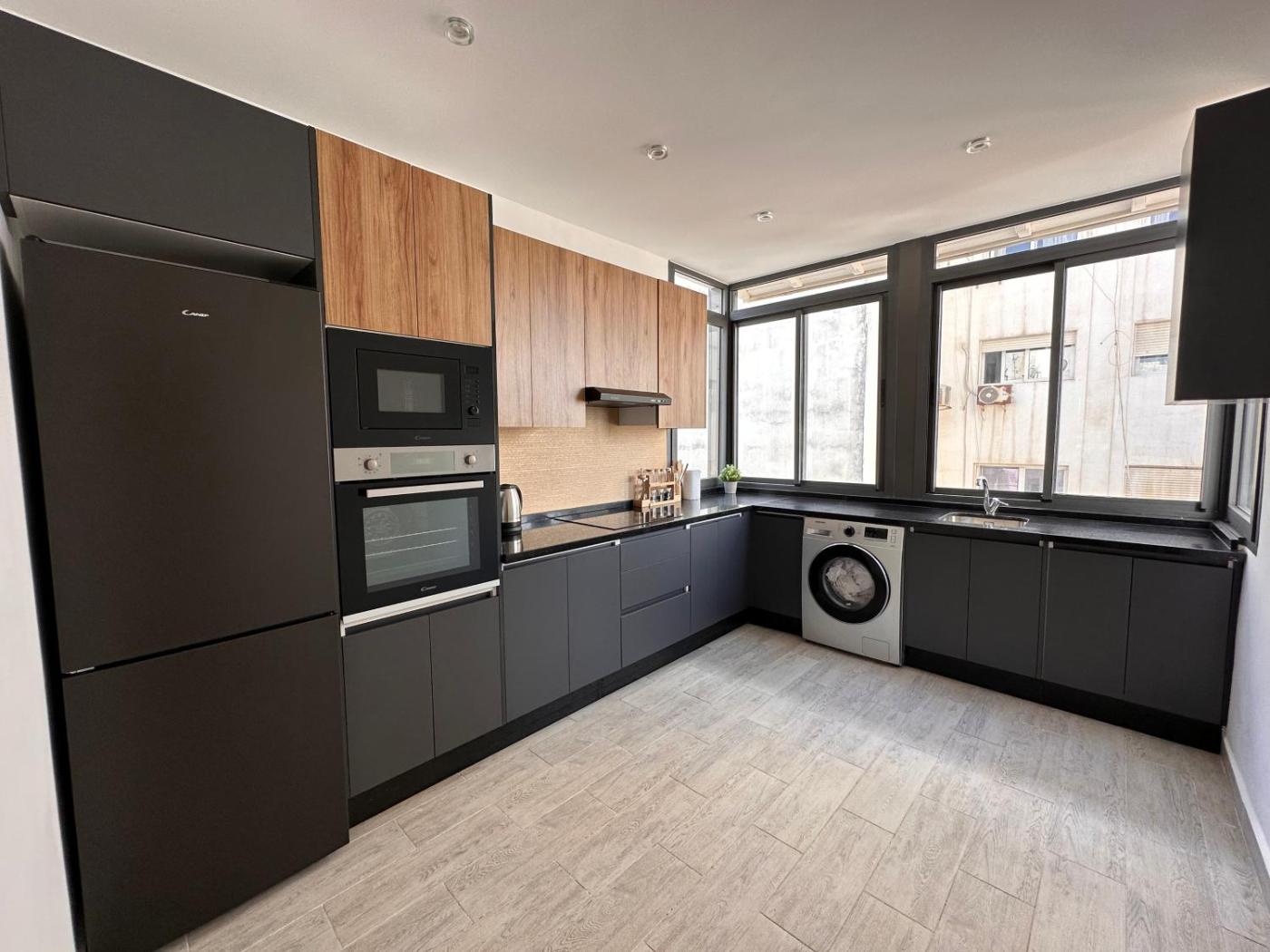 Three-Bedroom Apartment. The apartments kitchen is available for cooking and storing food. The spacious apartment offers air conditioning, a washing machine, a wardrobe, as well as a flat-screen TV. The unit has 4 beds.