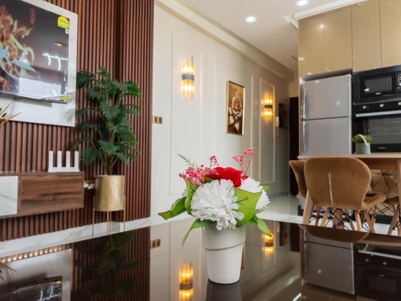 Two-Bedroom Apartment. The apartments kitchen is available for cooking and storing food. The spacious apartment provides air conditioning, a washing machine, heating and a flat-screen TV. The unit offers 6 beds.